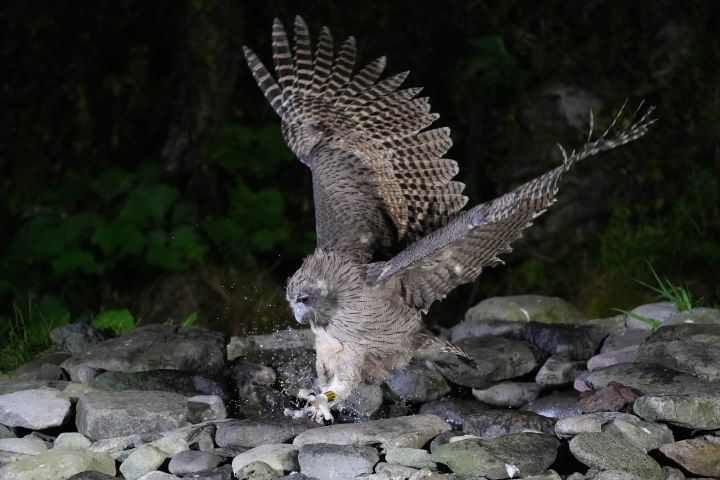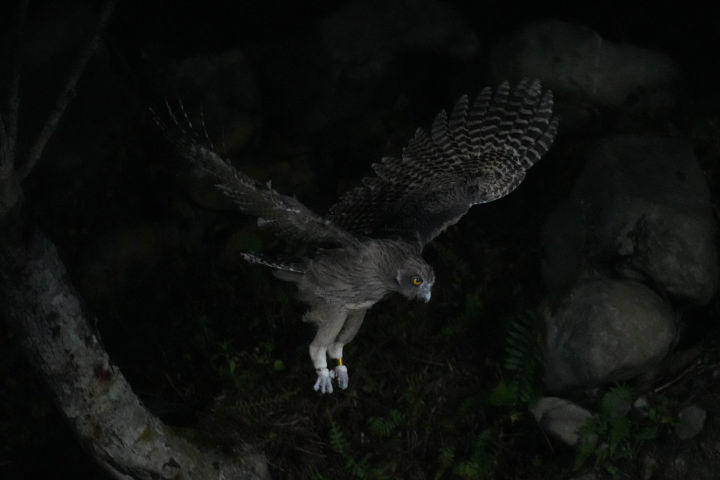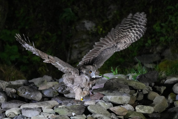 どうやらシマフクロウはヒナが生まれたようで、親は頻繁に餌を運んでいました。